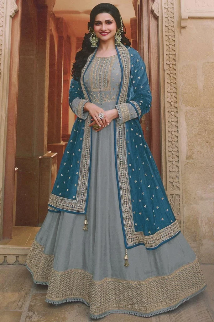 Wear your Anarkali without the churidar. The Indo Western look works well for evening soirĂ©es and receptions. Add a belt to your look and wear heels for a more streamlined silhouette.